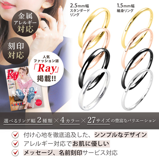 【メール便送料無料】刻印無料 アレルギー対応 サージカルステンレス リング 2.5mm幅スタンダード メンズ レディース