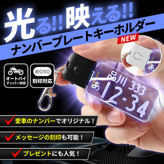 【メール便送料無料】七色に 光る ナンバープレート キーホルダー ナンバーキーホルダー LED 車 バイク ナンバー おしゃれ ギフトラッピング対応 USB充電式